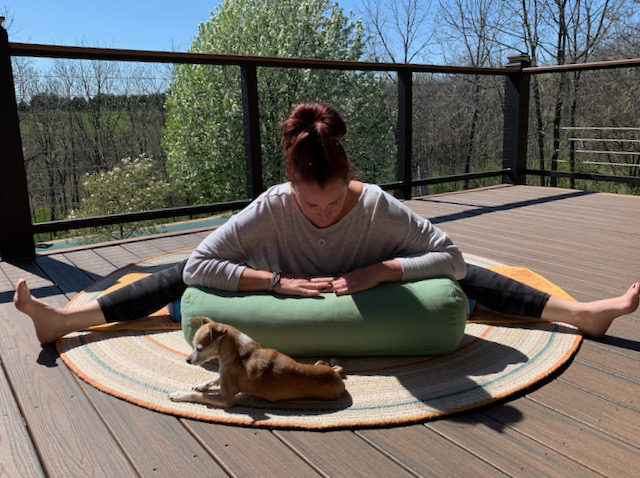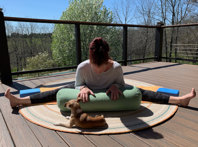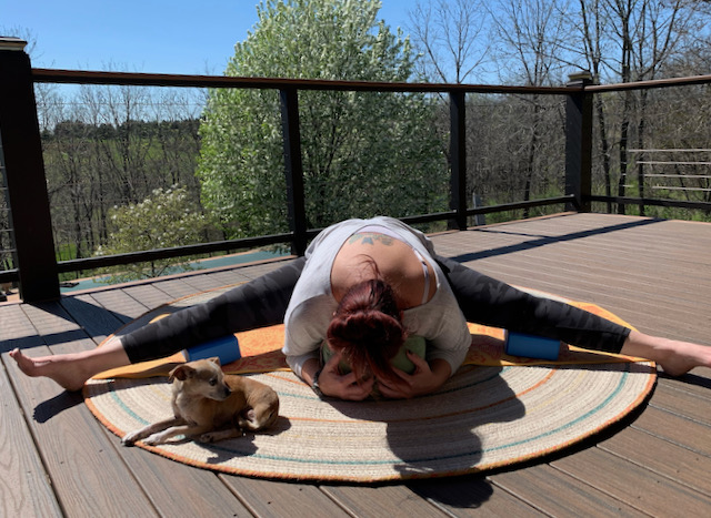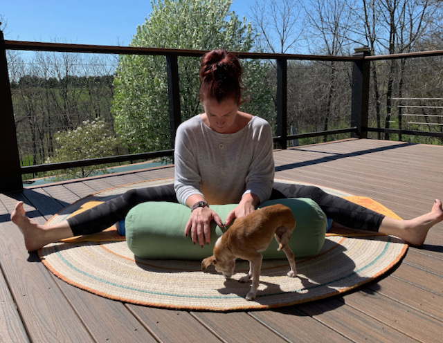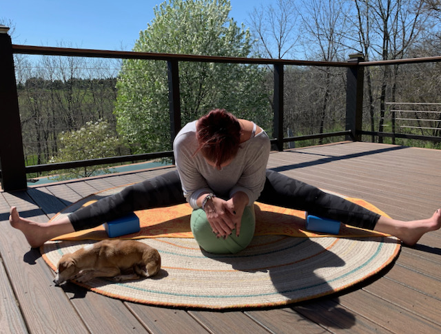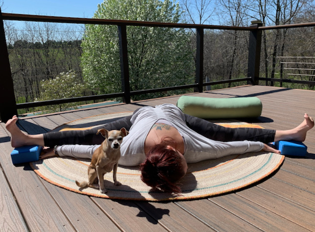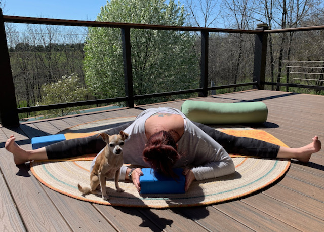 Upavistha Konasana is just one more adventure to somewhere new and exciting. (Special thanks to my super zen partner, Chiquita, for joining me on today’s journey.)